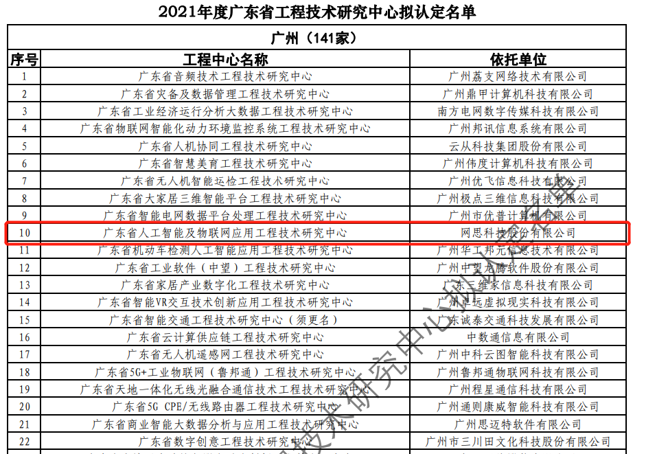 日前,广东省科技厅发布2021年度广东省工程技术研究中心名单。经过层层筛选、专家评审,依托华体会在线平台(中国)官网,建设的“广东省人工智能及物联网应用工程技术研究中心”榜上有名。广东省工程技术研究中心主要依托省内行业、领域具有科技实力的、拥有一定规模以上创新型企业建设,部分依托高校和科研院所组建。工程中心旨在
